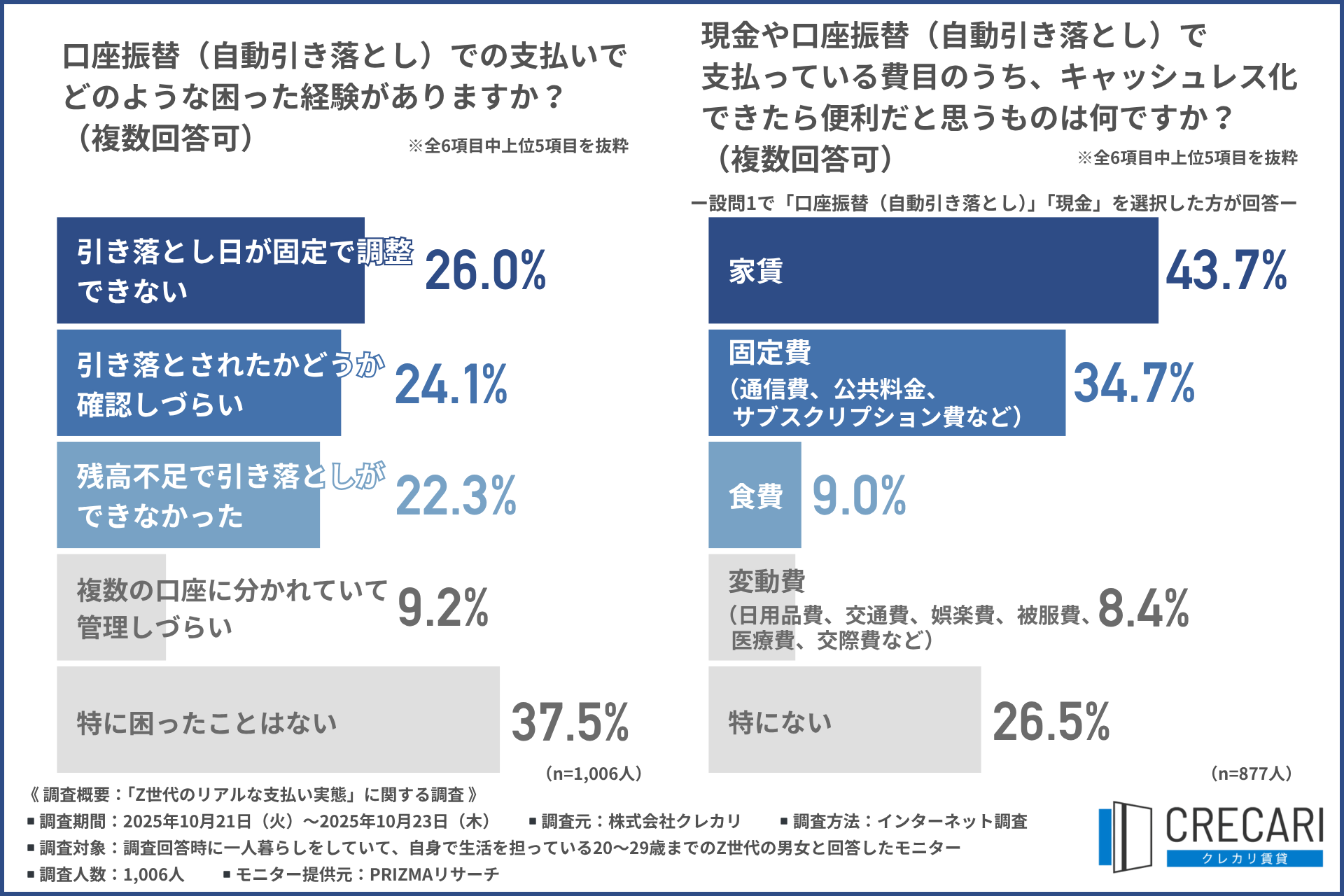 そこで今回、株式会社クレカリ(https://crecari.com/)は、一人暮らしをしていて、自身で生活を担っている20~29歳までのZ世代の男女を対象に、「Z世代のリアルな支払い実態」に関する調査を行いました。